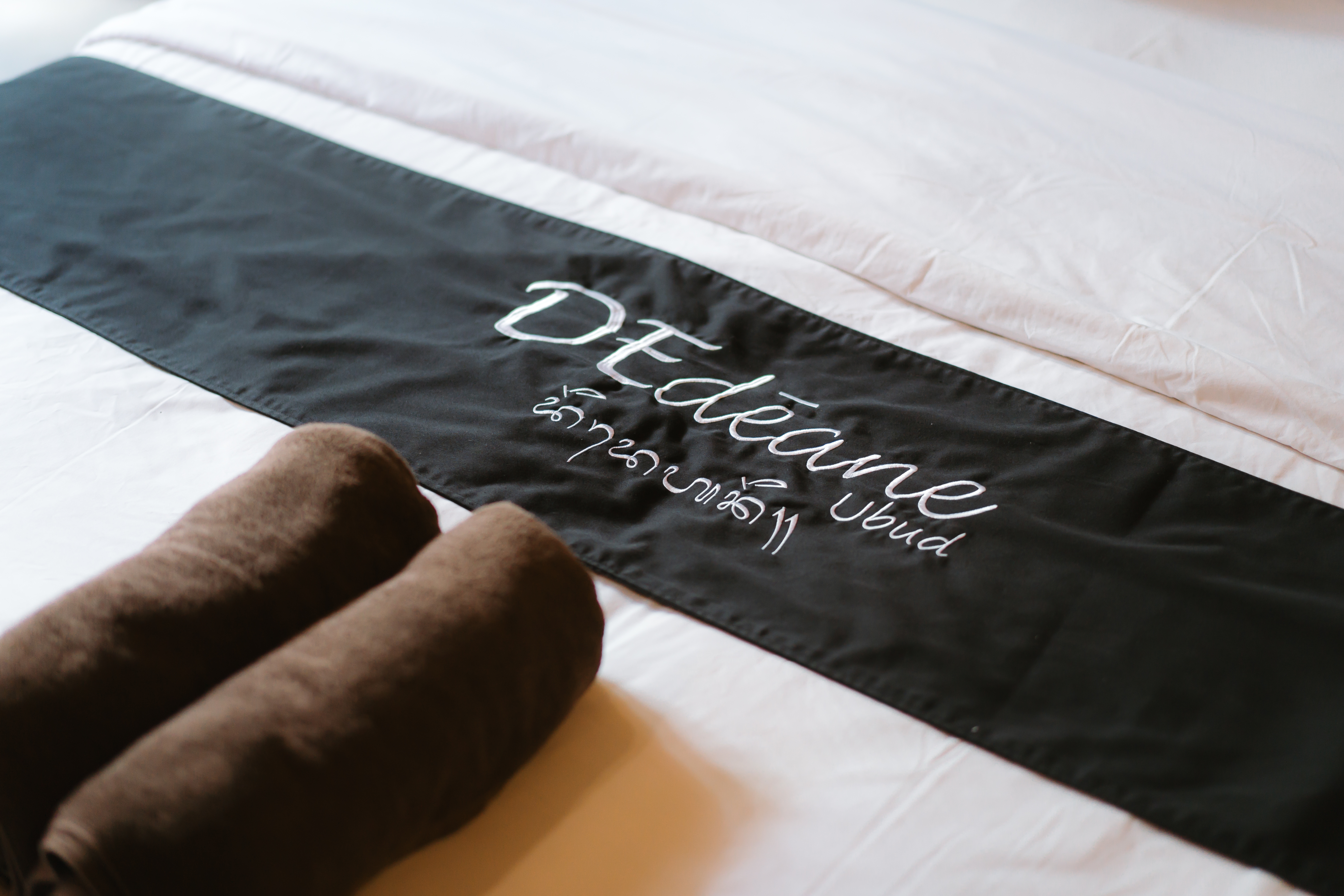 Comfortable double bed with embroidered cushions