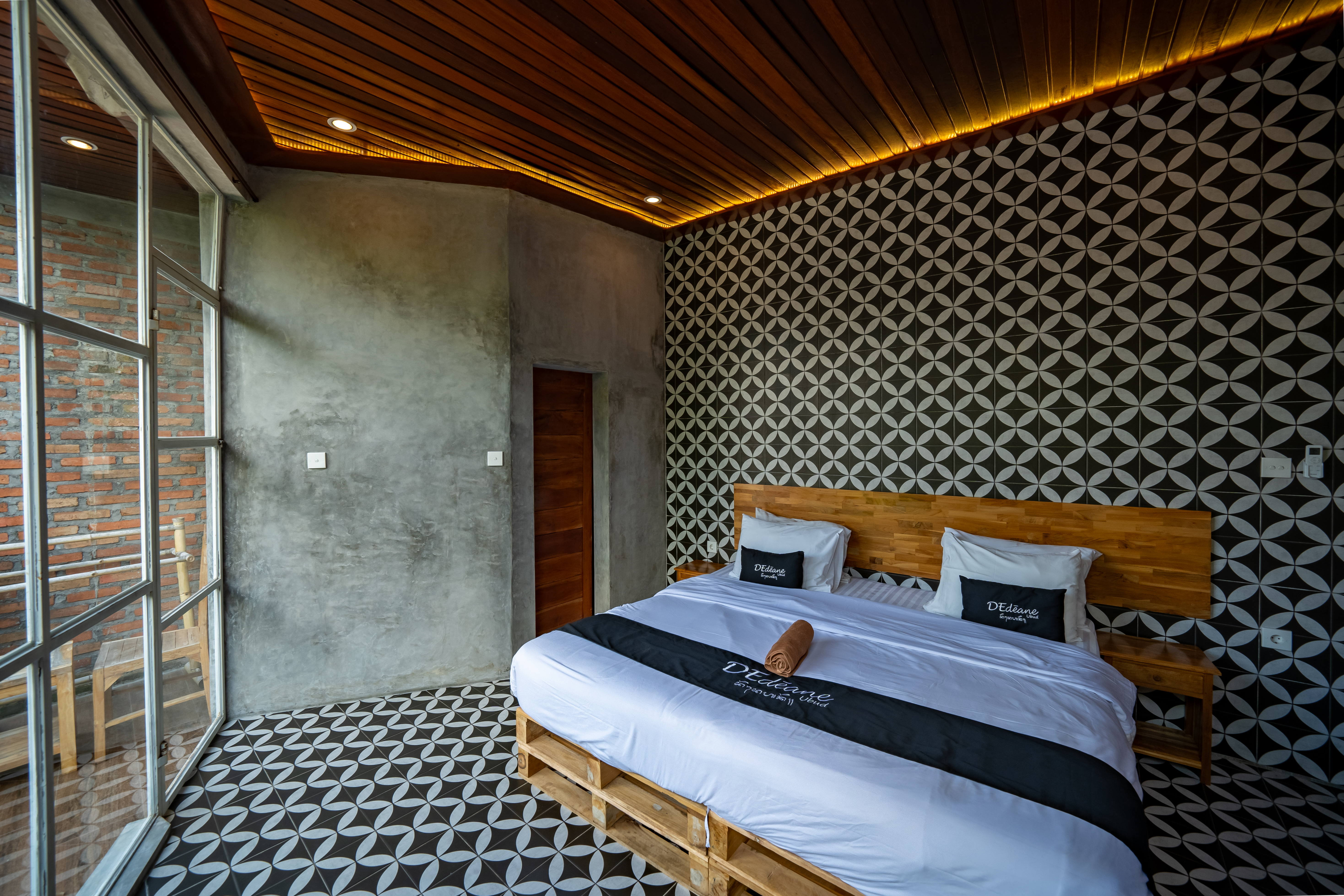 Room 13 – Double Bed Room with Patterned Wall & Decorative Floor